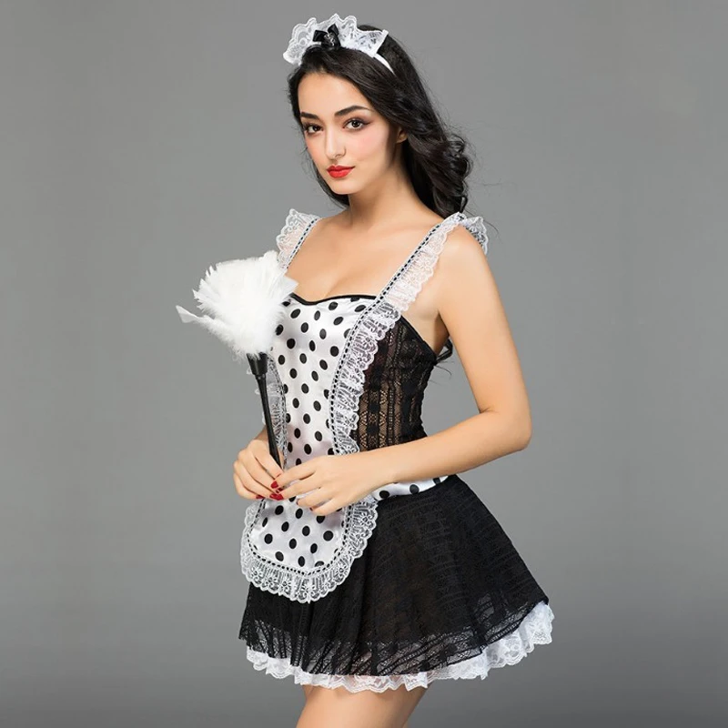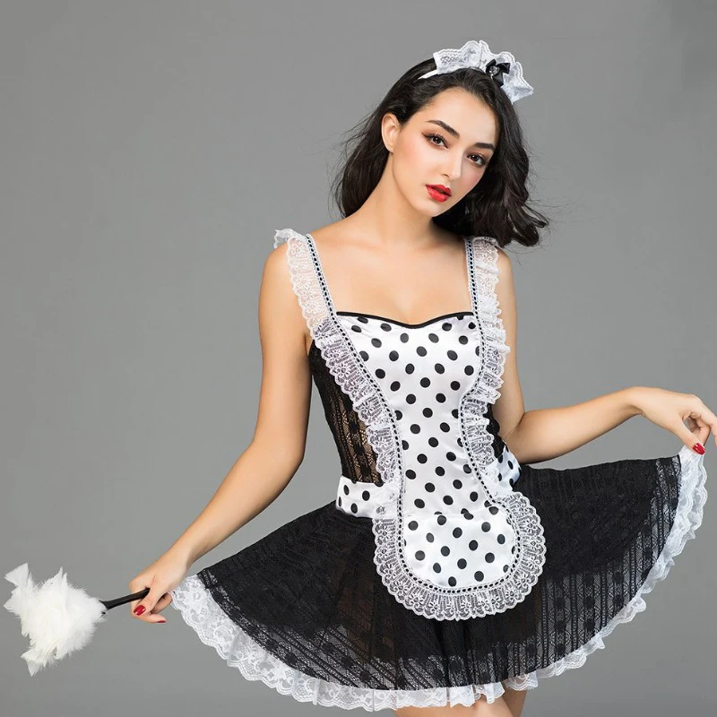 Review Top Hot Sale Sexy Plus Size Lingerie Sexy Cosplay Dot Printing Limitation Sexy Maid Room Servant Erotic