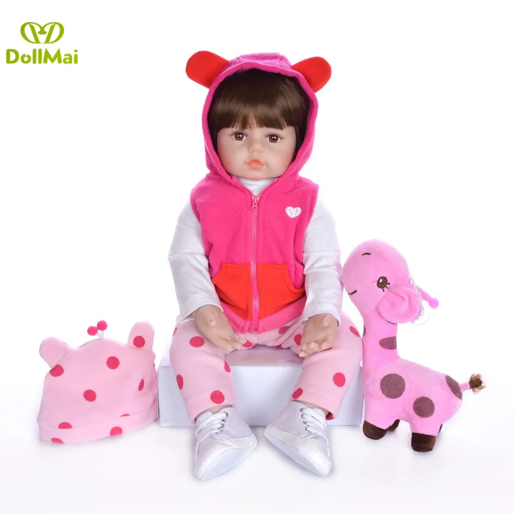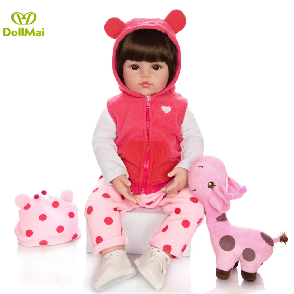 ORIGINAL Large size 58cm vinyl silicone reborn baby dolls with pink giraffe adorable girl real baby doll beb